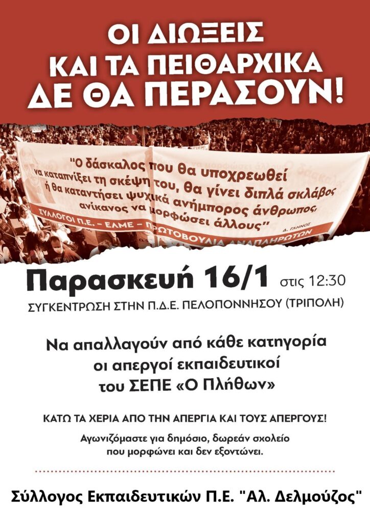 Κήρυξη συνεχών πανελλαδικών στάσεων εργασίας για την προάσπιση των εργασιακών μας δικαιωμάτων για τον μήνα Ιανουάριο