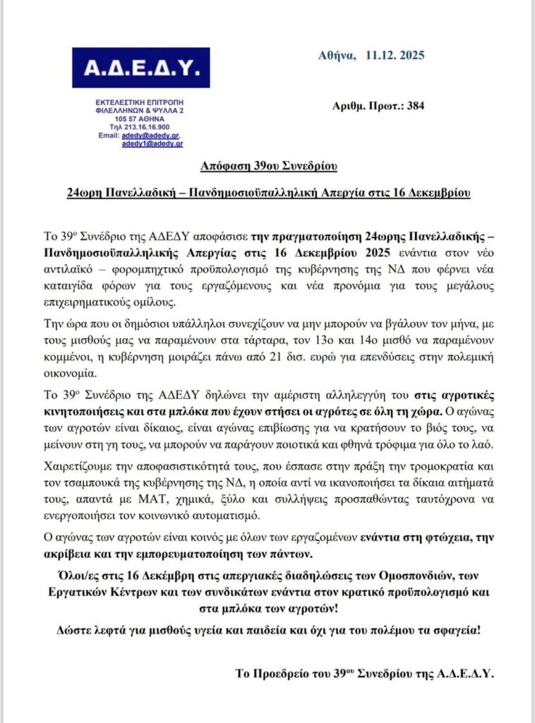 Κατάθεση υποψηφιοτήτων παρατάξεων ή μεμονωμένων υποψηφίων για τις εκλογές ανάδειξης αντιπροσώπων για την 86η Γ.Σ. της Δ.Ο.Ε.